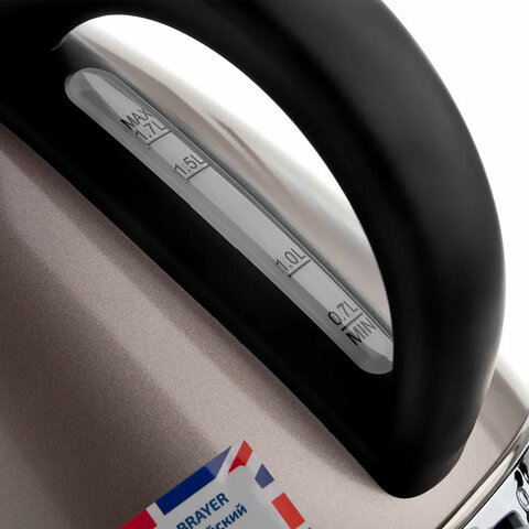Чайник с термометром BRAYER BR1007, 1,7 л, 2200 Вт, закрытый нагревательный элемент, сталь, бежевый описание