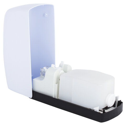 Дозатор из из ударопрочного ABS-пластика объемом 1 л обеспечивает высокую гигиеничность. Выдача мыла осуществляется экономичными порциями. Сочетается с расходными материалами других производителей. Имеется окно для контроля уровня мыла. Закрывается на кнопку, нажав на которую можно открыть дозатор (фронтальная часть откидывается вниз). Размер: 265х130х125 см. Крепежные материалы в комплекте.