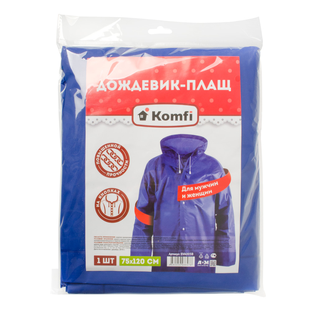 Дождевик плащ синий EVA с капюшоном на кнопках 110 мк Komfi описание