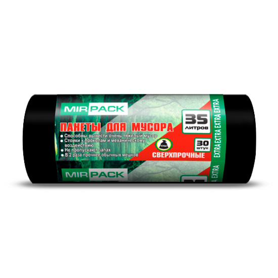 Пакеты для мусора 35 л EXTRA 30 шт/рулон, 12 мкм, MIRPACK черные описание