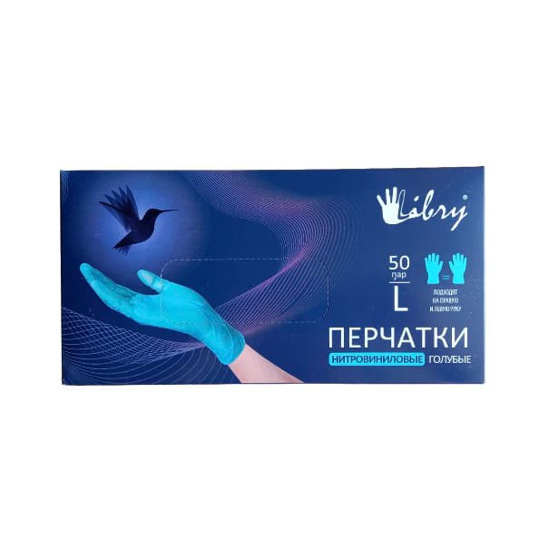 Перчатки нитровиниловые L размер неопудренные голубые Libry 100 шт/упаковка описание