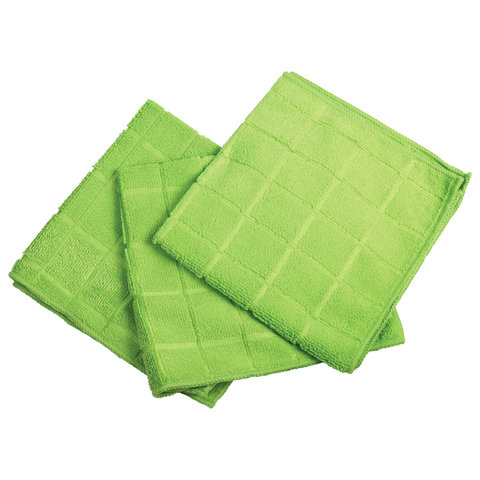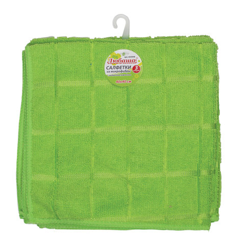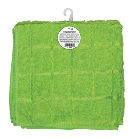 Салфетки универсальные, КОМПЛЕКТ 3 шт., микрофибра, квадратное тиснение, 40х40 см, зеленые, 220 г/м2, ЛЮБАША, 603948 описание
